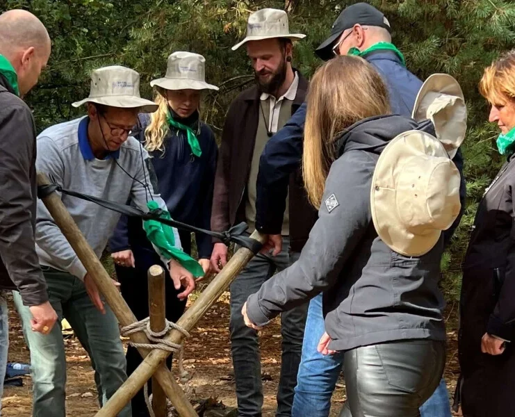 De gasten werden op zaterdag rond lunchtijd ontvangen in de stretchtent die speciaal voor het jubileumfeest was neergezet op het grasveld van het hotel. Nadat iedereen had genoten van de lunch, was er een bijzondere aftrap van de Expeditie. Iedereen kreeg eerst een Australische Expeditie hoed waarna een haka workshop volgde. Een verhaal vertellen door dans, hoe gaaf is dat? Een ideale teambuilding activiteit! Vervolgens maakten de gasten groepen waarmee zij op de Veluwe diverse Expeditie opdrachten moesten volbrengen. Van touwtrekken tot vuur maken en van een wandelende A bouwen tot een groepsvlag ontwerpen. De spanning was om te snijden want welk team zou gaan voor de hoofdprijs? Samenwerking stond centraal en het winnende team genoot van een heerlijke fles champagne en de teamleden kregen allemaal een medaille.