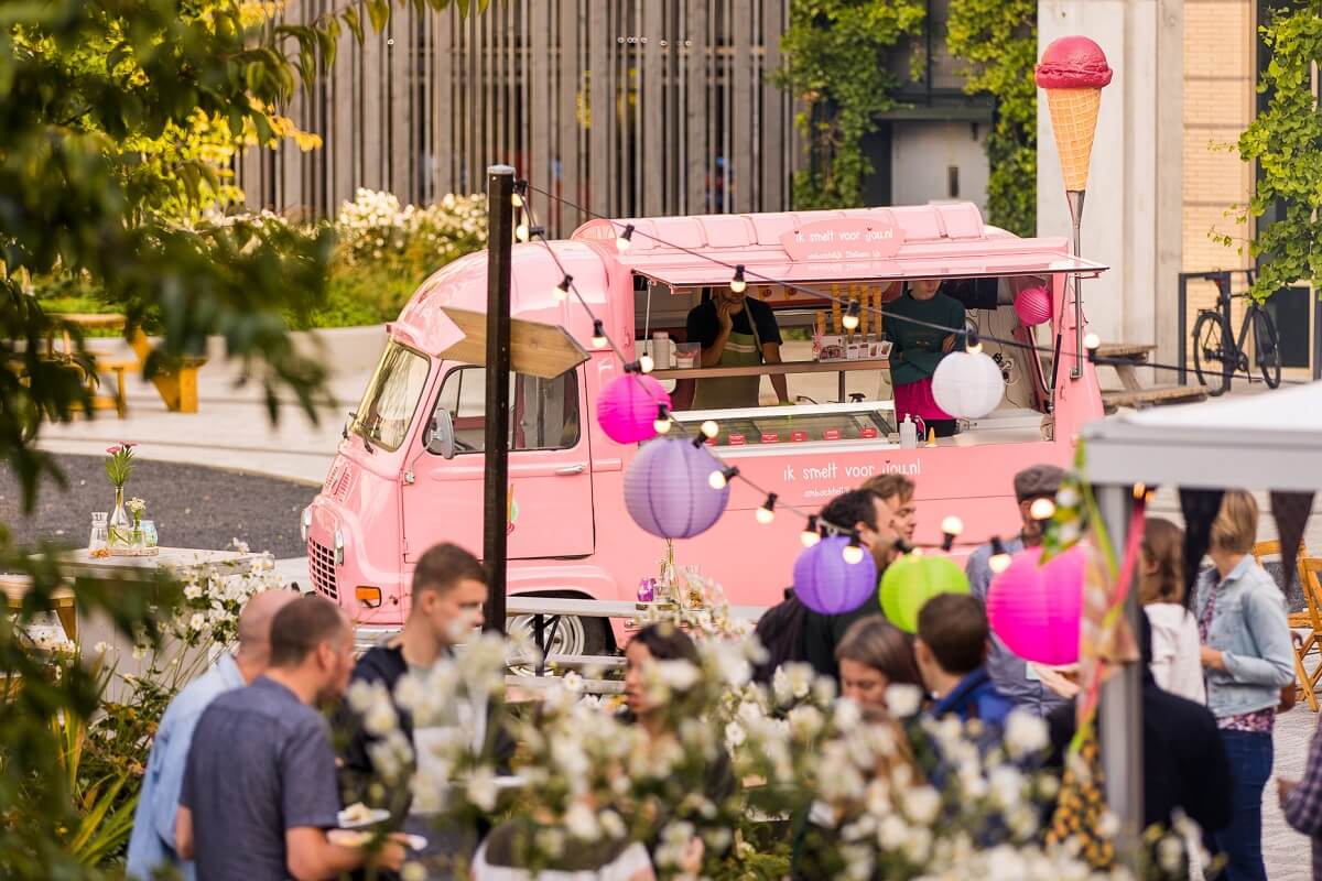 Wat altijd heel goed werkt zijn speciale zones. Denk bijvoorbeeld aan een kids area, een food zone en een entertainmentstage.
