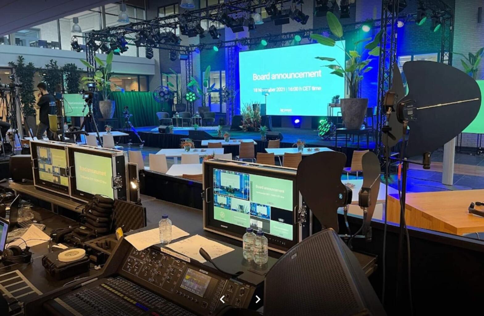 Je kunt evenementenbureau Advance Events inschakelen voor een online evenement dat je vanuit jullie eigen locatie wilt organiseren. In dat geval bouwen wij in jullie bedrijfspand een pop-up studio met alle techniek die nodig is. Je kunt voor jullie online event ook kiezen voor een externe studio.