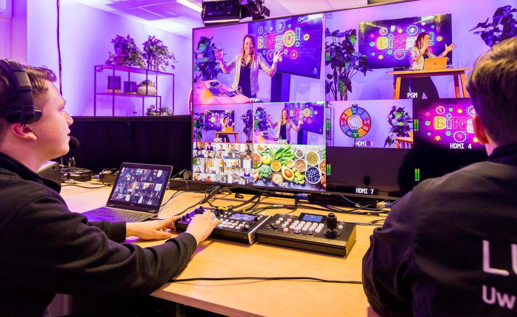 We helpen je met de drie basisvragen die voor ieder livestream event beantwoord moeten worden: wat is de inhoud, welke vorm is het beste en welke techniek is er nodig. Samen kijken wij naar de mogelijkheid voor een pop-up studio bij jullie op de eigen locatie of zoeken wij naar een geschikte externe studio en verzorgen daarbij alle techniek. Met veel plezier gaan wij met jou aan de slag met de inhoud en komen zo tot een online evenement waarmee jij scoort!
